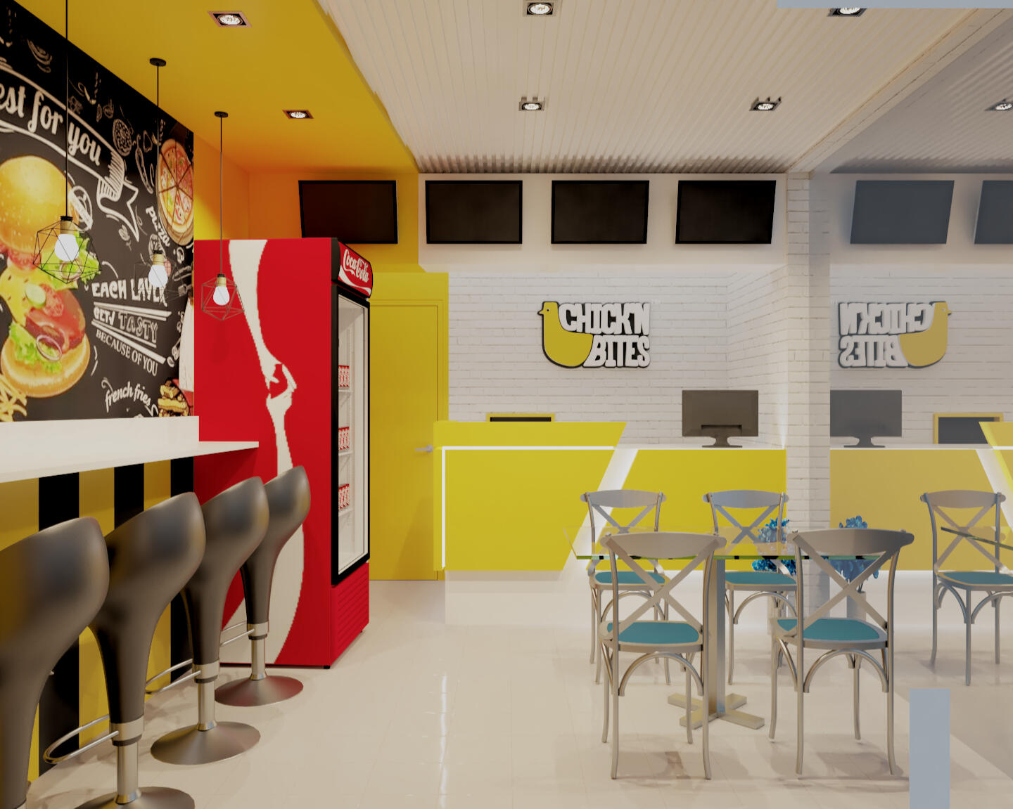 custom-built seating with MR-grade plywood for durability.The space highlights mood-focused lighting, a service-efficient layout,